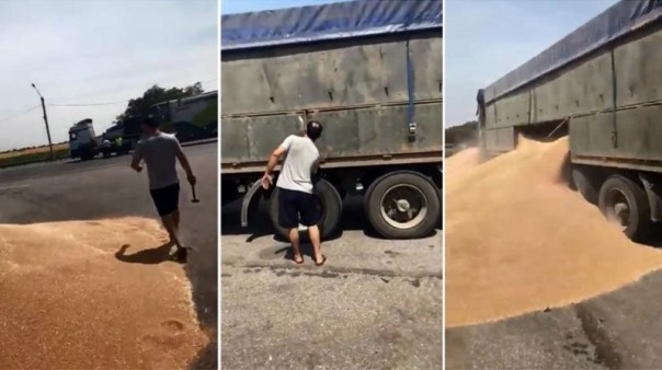 Часто договориться с полицейскими оказывается просто, но в этот раз что-то пошло не так. Иначе как объяснить поведение водителя зерновоза, который высыпал весь свой груз прямо на дороге?
