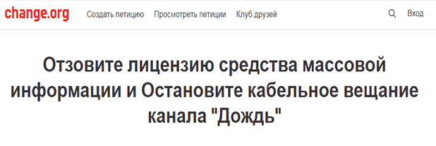 Против этого недоСМИ была также создана и петиция, призывающая отозвать лицензию «Дождя» на вещание.