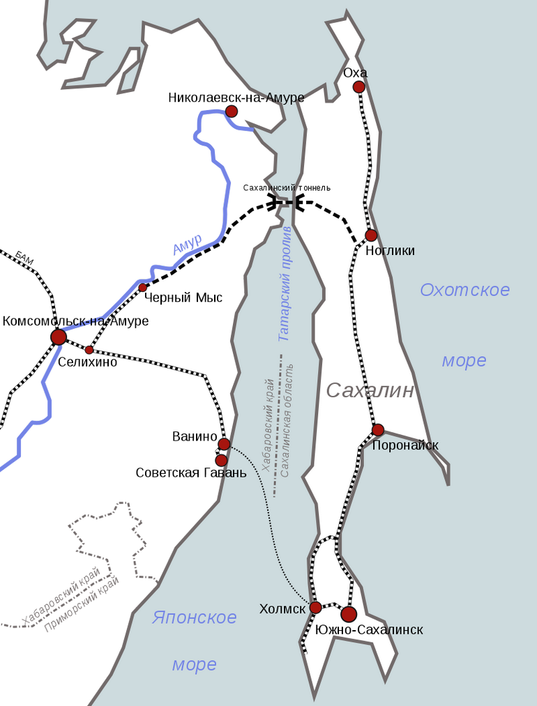 Кроме того, как также отметил эксперт, проработаны три варианта транспортных связей перевозки грузов из центральной Европы и России в Японию. Так, экспортный вариант предусматривает более 25 миллионов тонн в год, транзит внутри страны и импорт — 4,7 миллионов тонн, а также транспортировка внутрироссийских грузов по территории страны в сообщении между материком и Сахалином по новой железнодорожной линии Селихино через пролив Невельского — 9 миллионов тонн.