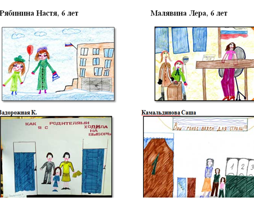 Впрочем, лучше всего отразят представления детей о выборах их рисунки на тему «Как я ходил с родителями на выборы».