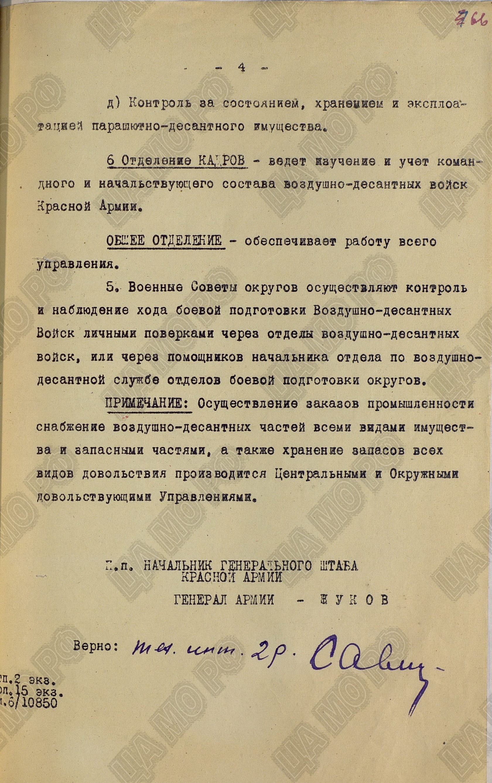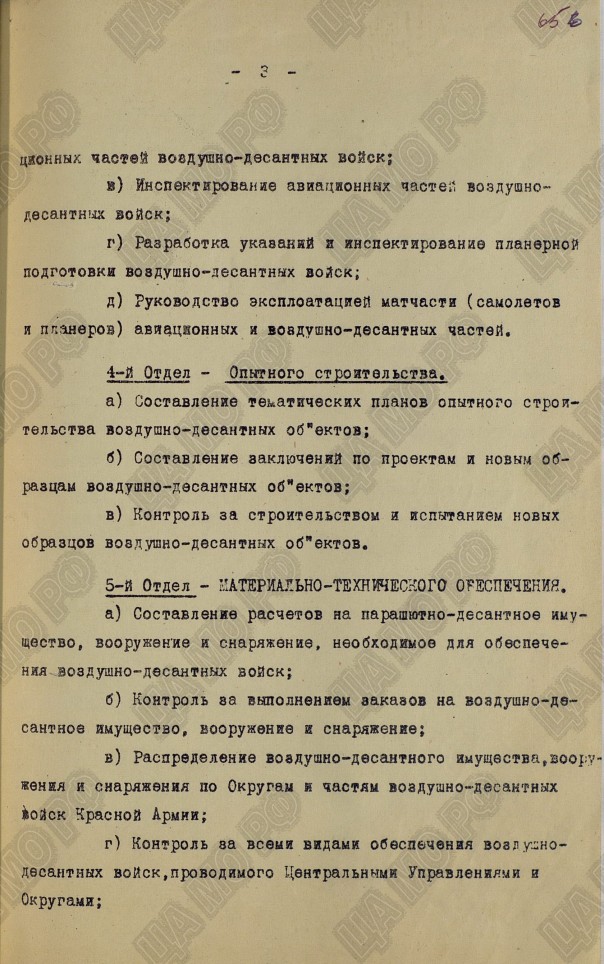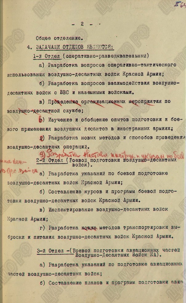 Проект Положения о Главном управлении Воздушно-десантных войск Красной армии