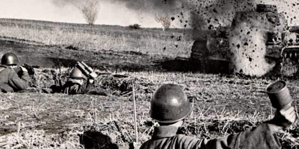 Отражение танковой атаки советскими войсками под Харьковом, 1942 год. Автор снимка — военкор Евгений Подшивалов