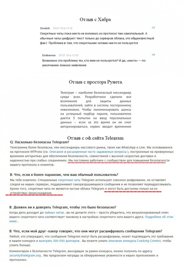 Несмотря на уверения Павла Дурова, создателя мессенджера Telegram и основателя одноименной компании, сервис не является самым защищенным в мире. В упомянутой статье рассказано, что «сквозное шифрование» (end to end encryption), которым так бравировал Дуров, имеет ряд недостатков. Воспользовавшись этими «дырами», можно получить доступ к частной переписке и, в ряде случаев, даже просматривать «секретные чаты», реализованные разработчиками для обеспечения абсолютной конфиденциальности пользователей.