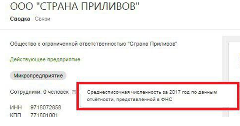 Но и это еще не все. Юрлицо, через которое ведется деятельность магазина, тоже вызывает массу вопросов. К примеру, почему численность сотрудников за год составляет ноль человек?
