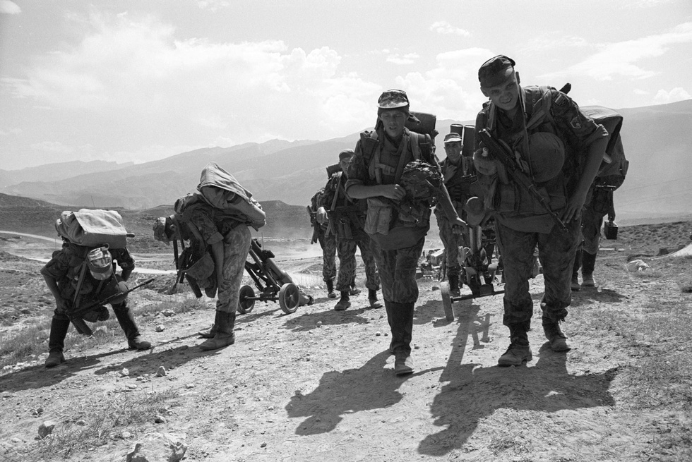 Подразделения ВДВ РФ на территории Дагестана в связи со вторжением в Ботлихский район вооружённых бандформирований с территории Чечни. 23 августа 1999 года. Фото: © РИА Новости/Сергей Пятаков