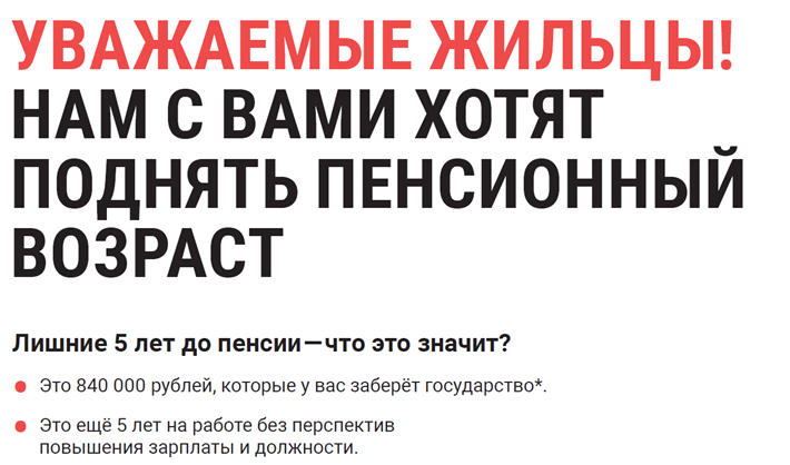 Помимо пенсионного калькулятора, блогер решил привлечь к себе внимание с помощью агитационных листовок. Его штаб распространял бумажку с призывами выхода на митинг, приводя в качестве документа невнятные цифры о том, что за пять лет переходного периода на новый пенсионный возраст люди потеряют по 840 тысяч рублей. Откуда Нэвельный взял эти цифры? Все до безумия просто и даже глупо: он перемножил нынешние пенсионные выплаты (14000 рублей) на 60 месяцев и получил вот такие данные. Это походит на глупую манипуляцию, не более.