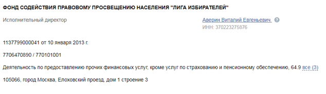 Движения могут не отчитываться о финансах, и получается, что материальные блага на «голосовой» счет идут через подставную фирму НКО «Лига избирателей», которую возглавляет, к слову, тот же Виталий Аверин, весь такой «независимый» и «непредвзятый». Тем временем деньги туда пребывают и пребывают.