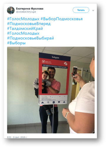 Однако по факту проверки оказалось, что рамку притараканили на выборы представители молодежного движения «Голос молодых». Наверно, ребята впечатлились московским примером, где на участках для голосования устраивали бесплатные фотосессии для избирателей и их детей, и тоже решили внести вклад в популяризацию выборов среди молодежи.