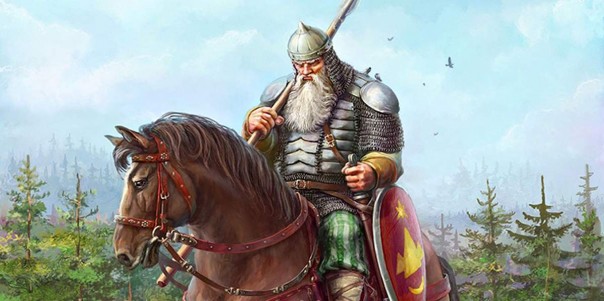 Как выглядит русский богатырь? Могучий воин в кольчуге, со щитом и копьём.
