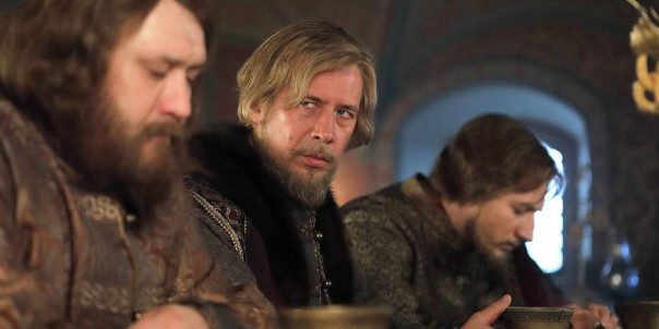 Вернёмся к самому началу фильма. Молодой Годунов вступает в опричнину. Делает он это в какой-то избушке, где Малюта Скуратов с аппетитом ест суп. Малюта у нас «государев человек», показанный с большой симпатией. Делает свою работу с душой — видно, что жестокостей не любит. И вообще в опричном терроре виноват царь. А исполнители — они же душевные люди. Сражаются на саблях, отличаются чувством юмора — прямо мушкетёры короля.