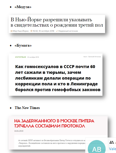 Одной из тем, активно пропагандируемых в либеральных российских СМИ, является ЛГБТ-сообщество. Материалы, где с большой симпатией описаны прелести однополой любви, а также других отклонений в сексуальной жизни, появляются на их страницах с завидной регулярностью.