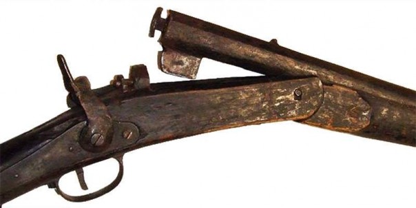Кустарный одноствольный дробовик-переломка 12 калибра. Запирание верхним ключом, экстрактор, замок — от армейского капсюльного нарезного ружья обр. 1854 года