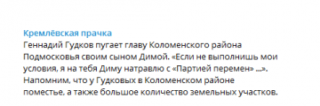 Более того, если уж реализовывать этот завод, то привлекать к этому немецких друзей семьи, но и тут Гудковых обламывают. Короче, по всем пунктам хотят обогатиться, и с земли получить денег, и с немецких бизнесменов. Гудковы скатились даже до угроз, чем очередной раз показали, что для продвижения своих целей готовы на все.
