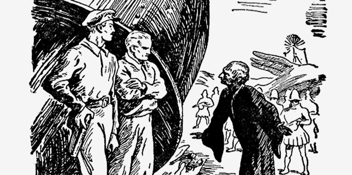 Причём здесь автор фактически комбинировал пистолет с ещё не изобретённым лазером. Или бластером. Любопытно, что «бластер» в привычном нам написании — blaster — появился как раз в тот 1938 год, когда Адамов начал свой роман.
