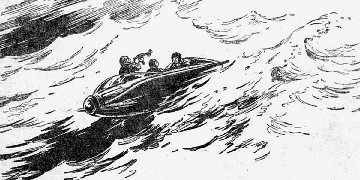 Герои «Внуков Марса» Казанцева стреляют в доисторических венерианских чудищ из «гранатного ружья», но без особого успеха. Зато оно могло работать и под водой.