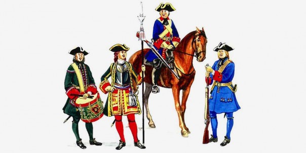 4. Вся пехота при Петре I одевалась в зелёные мундиры, а кавалерия — в синие