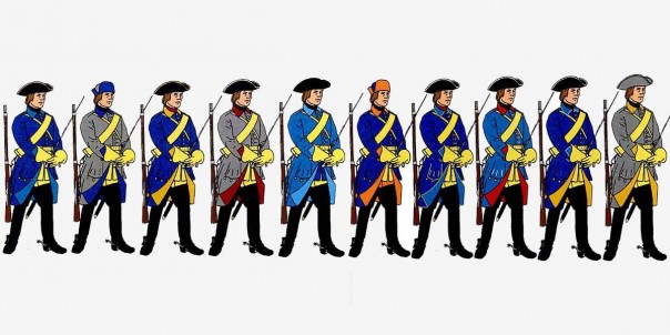 Унификация военной формы затянулась до 20-х годов XVIII века.