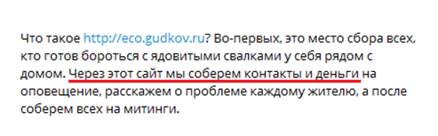 Причина, по которой Гудков обратился именно к мусорной теме, очевидна. Это действительно острая тема, и на ней можно хайпануть. Однако самый поверхностный анализ позволяет сделать вывод, что запуская проект, Гудков решил убить двух зайцев. А именно – заработать политические очки и в то же время срубить деньжат.