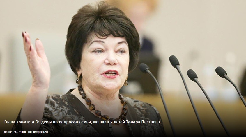 Глава комитета Госдумы по вопросам семьи, женщин и детей Тамара Плетнева в этом году отметилась рядом неоднозначных высказываний. Она предостерегала россиянок от «случайных связей» с гостями чемпионата мира по футболу и демонстрировала полное равнодушие к проблеме домашнего насилия. В конце октября Плетнева всерьез рассуждала о необходимости запретить сайты интернет-знакомств.