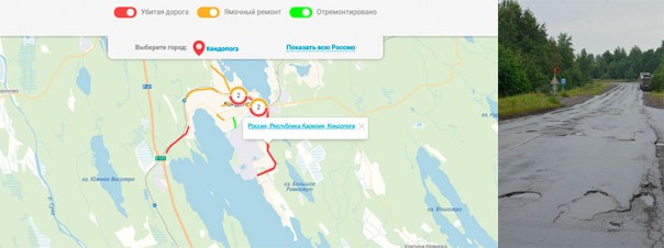 Общероссийский народный фронт, этот аналог «Народного контроля» в советское время, развивает очень любопытный проект: Дорожная инспекция ОНФ / Карта Убитых Дорог. По-моему, очень перспективное начинание.