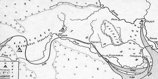 На приграничных со степью землях, в Поросье, образовался союз «чёрных клобуков» (печенегов, торков и берендеев), или «чёрных шапок». Самой мощной силой там были берендеи — в летописи есть упоминания, что в каких-то походах они выставляли 1500 и 2100 воинов.