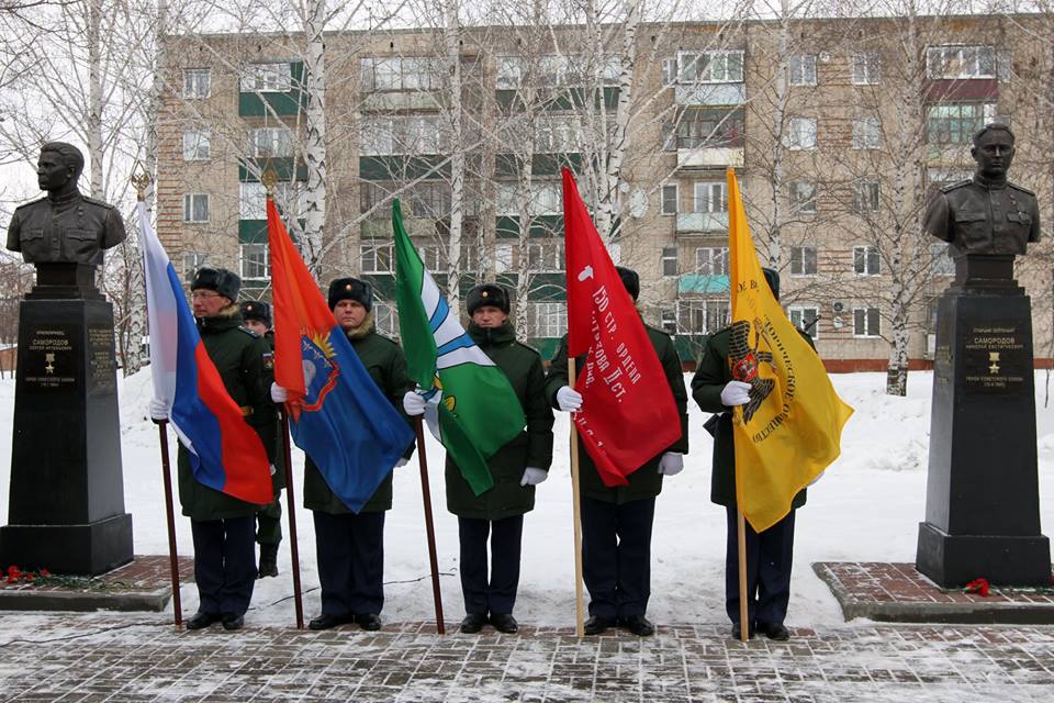В поселке Сатинка (Тамбовской области) в конце февраля прошла церемония открытия памятников Героям Советского Союза Сергею и Николаю Самородовым. В торжественной обстановке Российское военное историческое общество передало в дар области изготовленные монументы.