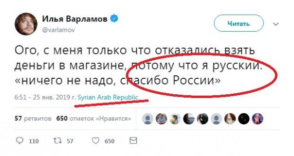 В качестве заключения, Варламов иронично интересуется «Ну как, уже готовы записаться в добровольцы и двинуть в Сирию за новыми трофеями?»
