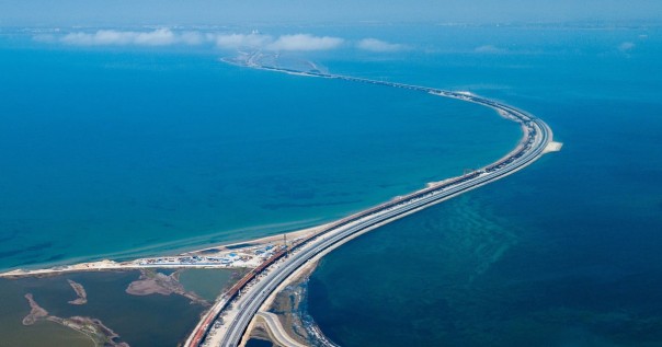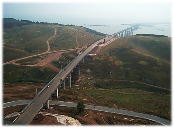 Предметом особой гордости и славы является 19-километровый Крымский мост над Керченским проливом, соединяющий освобождённый Крымский полуостров с Россией-матушкой. Поэтому Крымский мост сохраняет за собой звание самого протяжённого моста, хотя, как я указал выше, на это звание может по праву претендовать и Защитная дамба Санкт-Петербурга протяжённостью 24,5 км.
