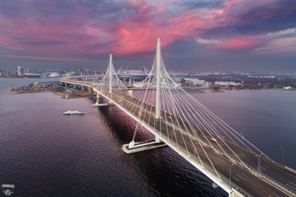 4. Северный мост на скоростной автомагистрали, пересекающей западную часть Санкт-Петербурга над сушей и морем, 8,8 км (полностью открыт в 2016 г.)