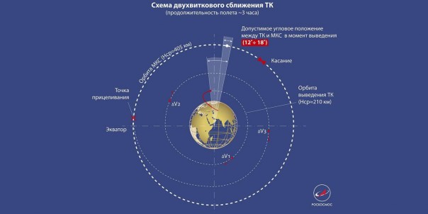 Это позволяет уменьшить фазовый угол между плоскостями орбит космического корабля и станции. Чем меньше фазовый угол, тем меньше сложных манёвров требуется, чтобы приступить к стыковке. При двухсуточной схеме он составляет 200-400 градусов, а при запуске по двухвитковой схеме — всего 12-18 градусов. Поэтому и запускать по сверхкороткой схеме корабль можно лишь два раза в сутки, когда максимально совпадают плоскости орбит, и далеко не каждый день в месяце.