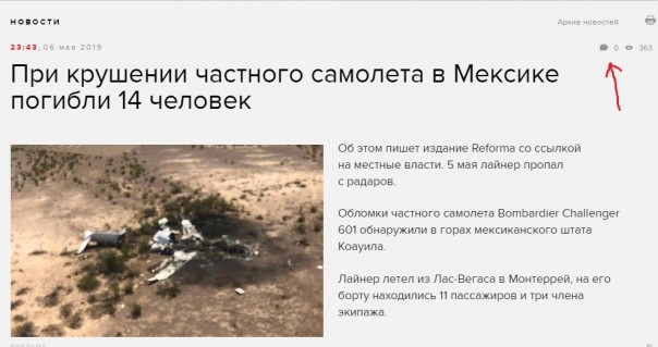 Вчера репостнул на АШ новость о том, что в Мексике упал и разбился самолёт канадского производства марки Bombardier летевший из США. Ну и в комментарии автора написал буквально следующее, извините за самоцитату: "русофобская ...два с Эха Москвы посвящающая по 10 новостей в сутки каждому чиху Маска ( в случае если он НЕ провален) и по 50 новостей аварии российских самолетов, вообще сообщит об этой катастрофе хотя бы 1 раз?"