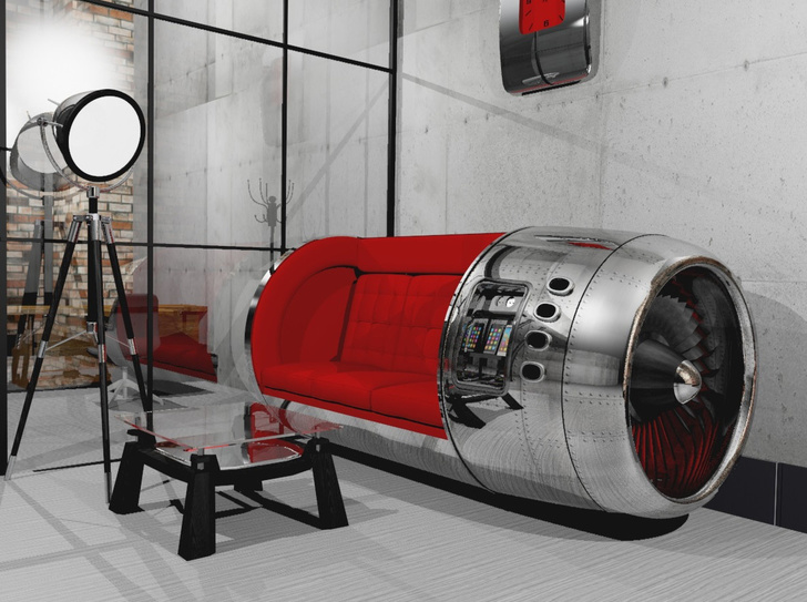 Из перспективных разработок, которые сейчас находятся в производстве — столик с подъёмным механизмом из крыльчатки Д-30КУ, разработанное известным мебельным дизайнером Ильёй Легчатовым кресло из носового обтекателя штурманской кабины Ту-134, и совсем уж масштабный проект — диван из гондолы Д-30. Продукция RU-SKY подчёркивает, что её владелец так или иначе связан с авиацией. На сайте russianplanes.net, куда ведёт QR код, можно посмотреть историю самолёта, из которого сделана эта вещь.