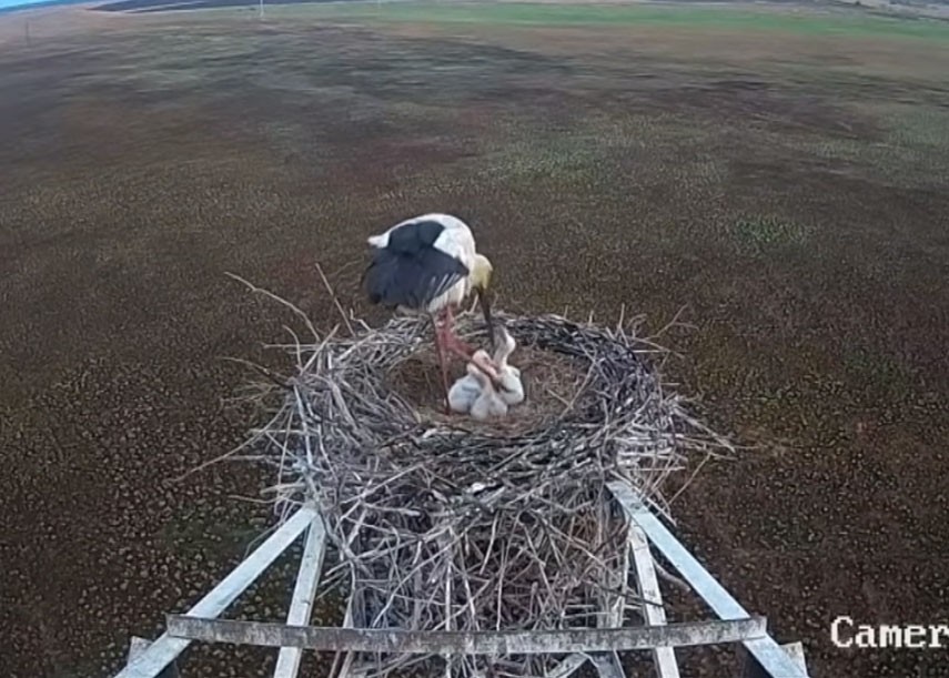 Камера виденаблюдения, установленная в Приамурье над гнездом дальневосточного аиста, сняла уникальные кадры.