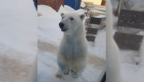 Первым в морском порту в ночь на 17 мая появился голодный и тощий медведь, который заглядывал в окна и иллюминаторы. Спустя несколько часов моряки с ледокола сняли медведицу с двумя детенышами, которые раскали в поисках пищи.