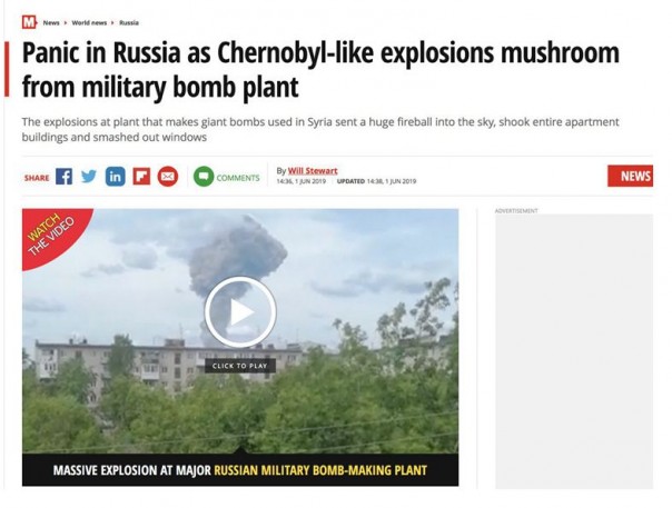 Фейк британцев тут же подхватили российские либеральные СМИ. Радио Свобода» постаралось нарисовать мрачную картину случившегося: «Над местом взрывов поднялся столб чёрного дыма в виде гриба, который был запечатлён на многочисленных фото и видео».