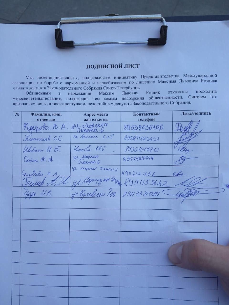 Сведения о том, что депутат Резник употребляет наркотики, появились ранее на портале “78.ru” .