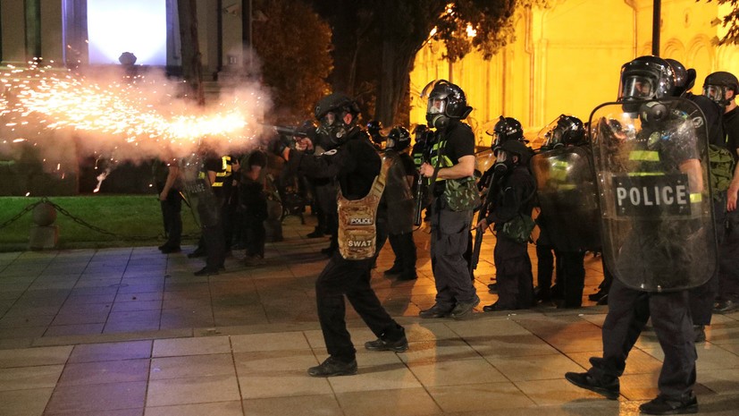 Ранее сообщалось, что при столкновениях протестующих и полиции возле здания парламента Грузии в центре Тбилиси пострадали по меньшей мере 52 человека, в том числе 38 полицейских.