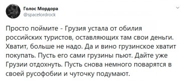 «Я бы на месте российских туристов пока воздержался от посещения Тбилиси... Зачем рисковать? Пусть сначала грузинские власти урегулируют ситуацию», — цитирует сенатора РИА Новости.