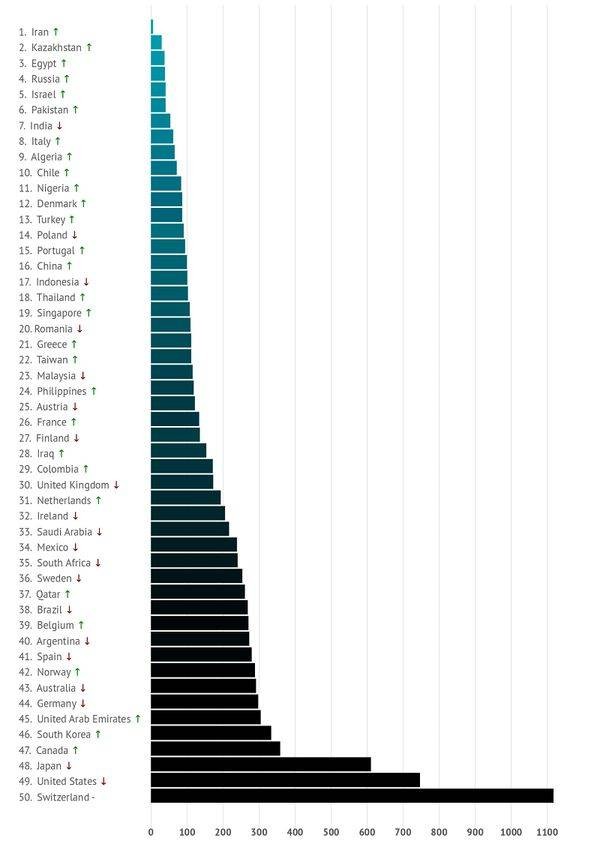 В приведенном ниже списке из 50 стран (практически не менялся с 2016 года, только в 2019 году Венесуэлу заменила Румыния), соответствующие тарифы присутствуют в 26. При этом на стоимость существенно влияют следующие факторы: увеличение пакетов мобильного трафика с одновременным снижением их стоимости, введение безлимитных тарифов, волатильность национальных валют, конкуренция на рынке, размер страны, доступность 5G. В каждой из стран изучались тарифы до четырех крупнейших операторов.