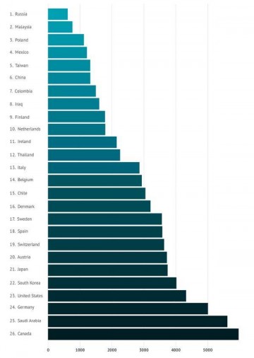 Уточняется, что средняя мировая стоимость тарифа с безлимитным мобильным интернетом составила 2791,8 руб. в месяц. В России, согласно исследованию, средняя стоимость безлимитного интернета составляет 613 руб. в месяц.
