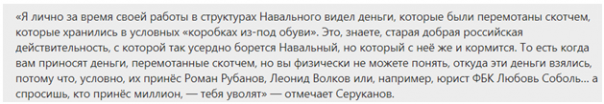 Кстати, к Серуканову присоединились и другие активисты из штабов блогера. Их не поддерживают ни морально, ни финансово. А Навальному по-прежнему поступают деньги на кошелек №2. Якобы для штабов, но по факту в карман Алексея.