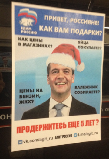 А глава петербургского отделения Кудрявцев сделал в Александровском саду инсталляцию в виде надгробия с фотографией президента страны. За это он получил 9 суток ареста. Другие активисты распространяли антиправительственные плакаты в метро СПб.