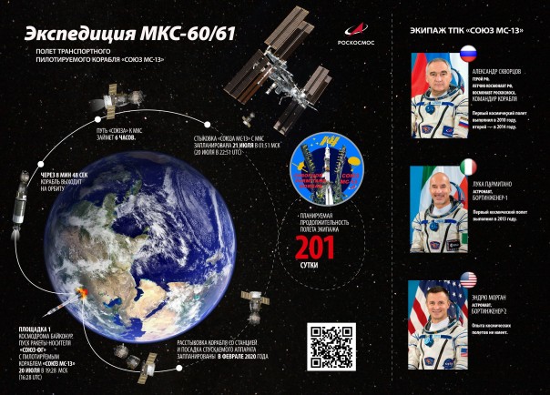 выведение на пилотируемом корабле «Союз МС-13» экипажа МКС-60/61;
