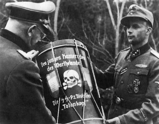 Понимаем, что «мёртвая голова» была реальным символом элитарности, и право носить её уже само по себе было высокой наградой. Ну и она должна была напоминать носящему ее о том, что он должен был готов умереть во имя. Просто во имя.