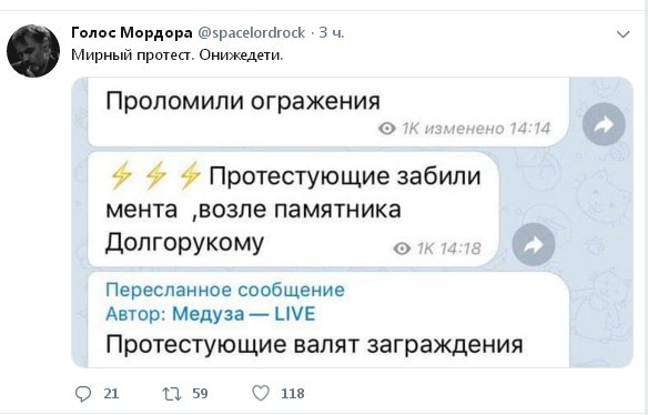 Предварительно сегодня задержали порядка 400-600 дурачков. Всего пришло в районе 3-3,5 т. дурачков. Подавляющее большинство, т.е. это как минимум, больше половины - не из Москвы и даже не из области! Подавляющее большинство задержанных провокаторов - не из Москвы и не из области. Выводы, в целом, очевидны. И это просто цифры, не окончательные, к тому же - не выкладываю видео мирных протестунов, которыми забиты ТГ-каналы. Смотреть без боли, как сволота лезет на наших парней - невозможно. И Яшин не пришел, а его так ждали.