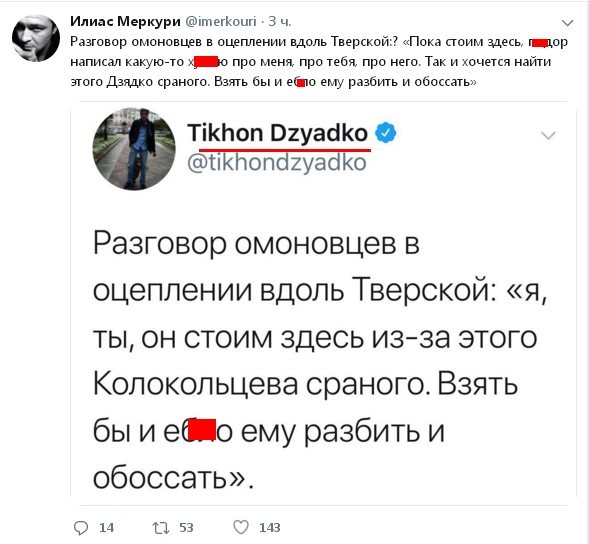 Более того. ОМОН пришел в редакцию т.н. "Навальный Live", а также в редакцию т.н. телеканала "Дождь", что особо интересно. Ведь т.н. журналисты "Дождя":