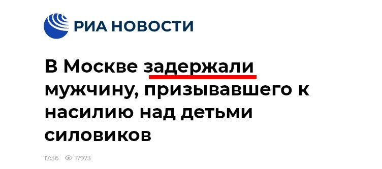 Кстати, что характерно, заметили? Когда у нас, да, это проблема, кто-то приносит, например, жена, заяву - что ее бьет муж, есть такие примеры, бывало заявление не принимали с ответом - "без"тела нет дела". И тут либерда всегда взрывается про "эту страну". Но если какой-то "мальчик" (они же дети, вы помните?) - призывает УБИВАТЬ ДЕТЕЙ ПОЛИЦЕЙСКИХ - это совсем другое! Сравните просто два заголовка. Один с Медузы, другой с РИА. Казалось бы - тема одна и та же, но!