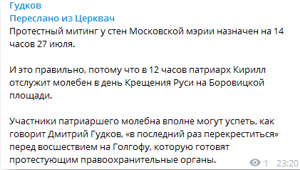 Стоит отметить, что за Гудковым ранее не было замечено особой религиозности. Выглядит так, как будто, его кто-то надоумил проводить параллели между незаконными митингами и библейскими сюжетами.