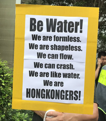 В подписках у гонконгской группы с Гадсденовским флагом в «Твиттер» есть группа с интересным названием «Be water» («Будь водой»).