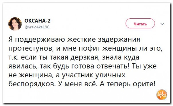 Безусловно, в действиях полицейского нет ничего хорошего. Бить задержанных, тем более женщин, неправильно, и если вина его будет доказана, то он должен понести наказание. К слову, на протестных акциях случаи задержания митингующих женского пола единичны, правоохранительные органы стараются их не трогать до экстраординарных выходок.